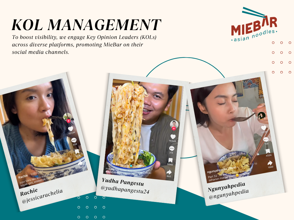 In order to connect with new audiences beyond MieBar’s followers, we utilize the authenticity of Key Opinion Leaders from different fields, mainly foodies and lifestyle.
