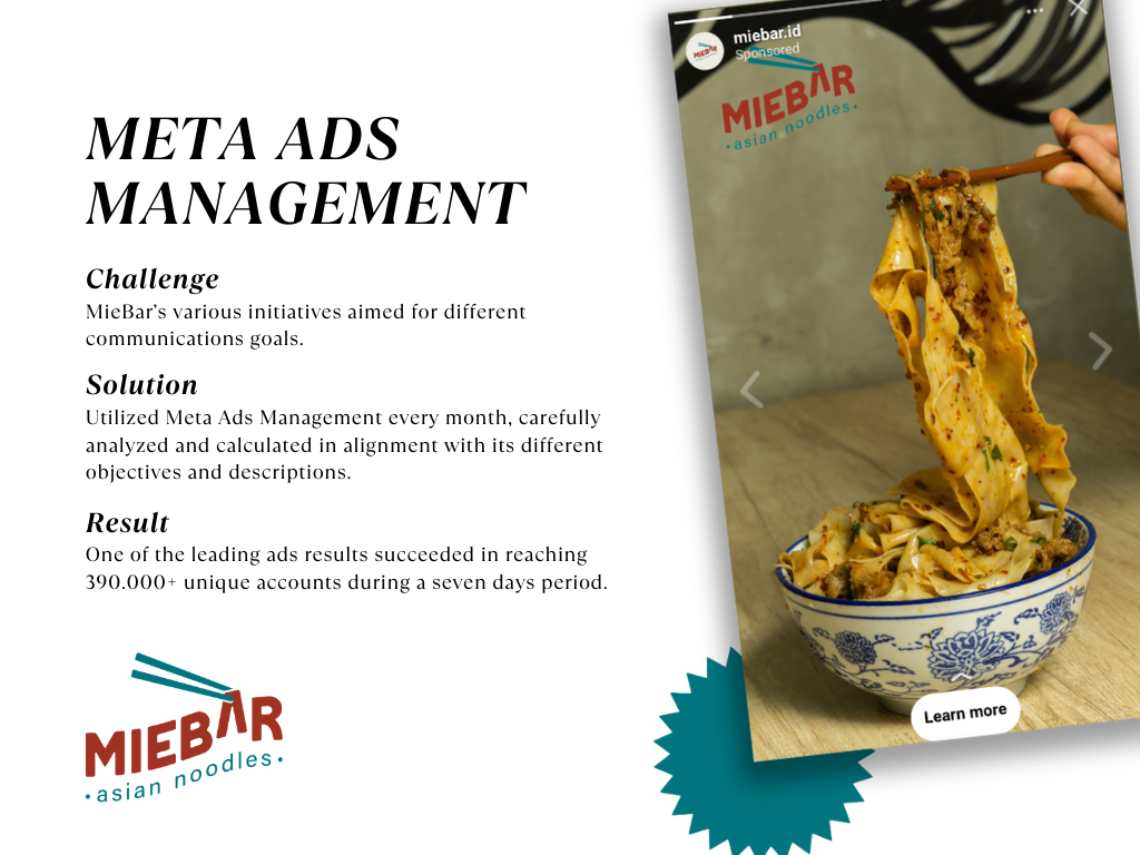 From content planning, content productions, design and caption development, we help to manage MieBar’s Instagram by mixing their visual identity and content pillars.