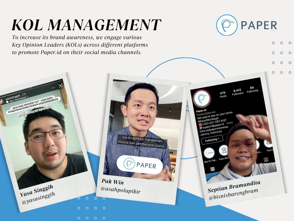 Through strategic collaborations with top-tier KOLs from business, entrepreneurial and financial industries, we’ve assisted Paper.id to connect authentically with their target audience — delivering their core messages and expanding brand awareness. From KOLs curation to upload supervision, we have guaranteed a smooth KOL engagement journey for Paper.id.